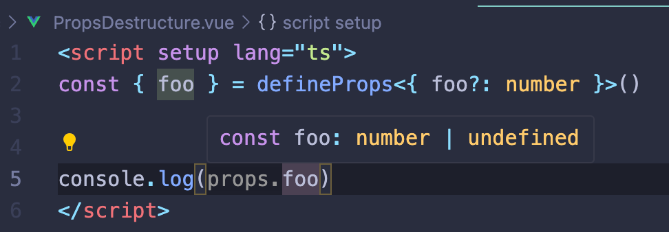 对于那些更喜欢将解构的 props 与普通变量区分开来的人,@vue/language-tools 2.1 版本已经发布了一个可选设置,可以为它们启用内联提示: